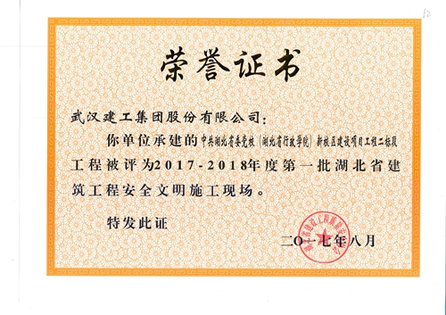 2017年,武漢建工集團(tuán)進(jìn)一步加強(qiáng)施工現(xiàn)場(chǎng)安全文明施工管理,取得顯著成效。日前,根據(jù)《湖北省建筑工程安全文明施工現(xiàn)場(chǎng)評(píng)審辦法》,湖北省建設(shè)工程質(zhì)量安全協(xié)會(huì)表彰了一批在湖北省安全文明施工中有重要貢獻(xiàn)的施工項(xiàng)目。集團(tuán)“武漢亞洲醫(yī)院”等7個(gè)工程項(xiàng)目獲“2017-2018年度第一批湖北省建筑工程安全文明施工現(xiàn)場(chǎng)”榮譽(yù)證書。
